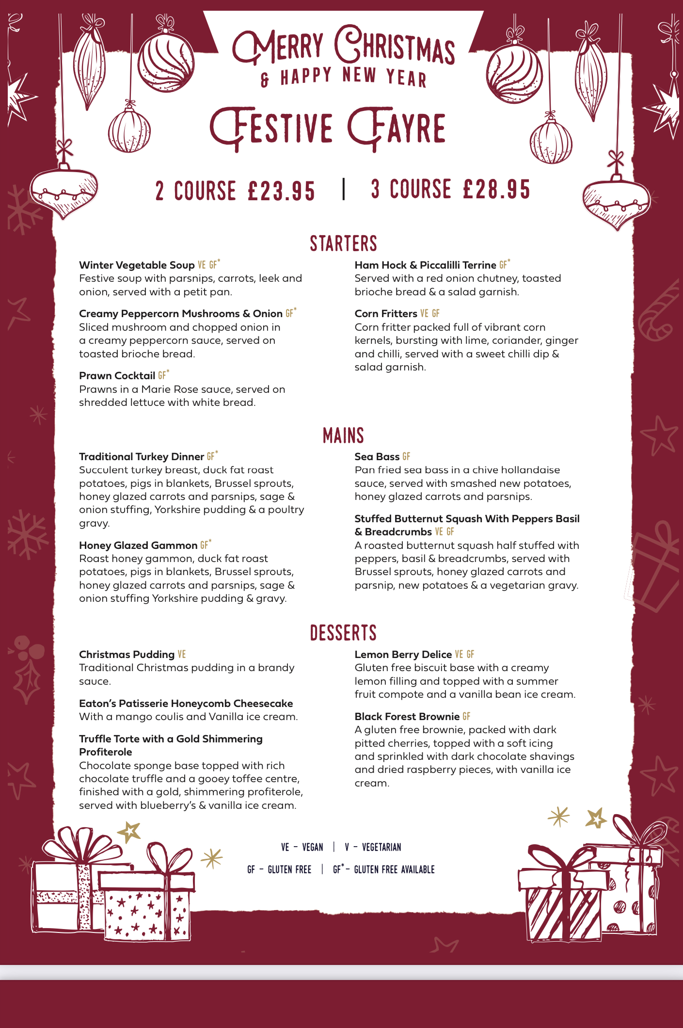 Our lovely festive menu is available from 1st-23rd December.